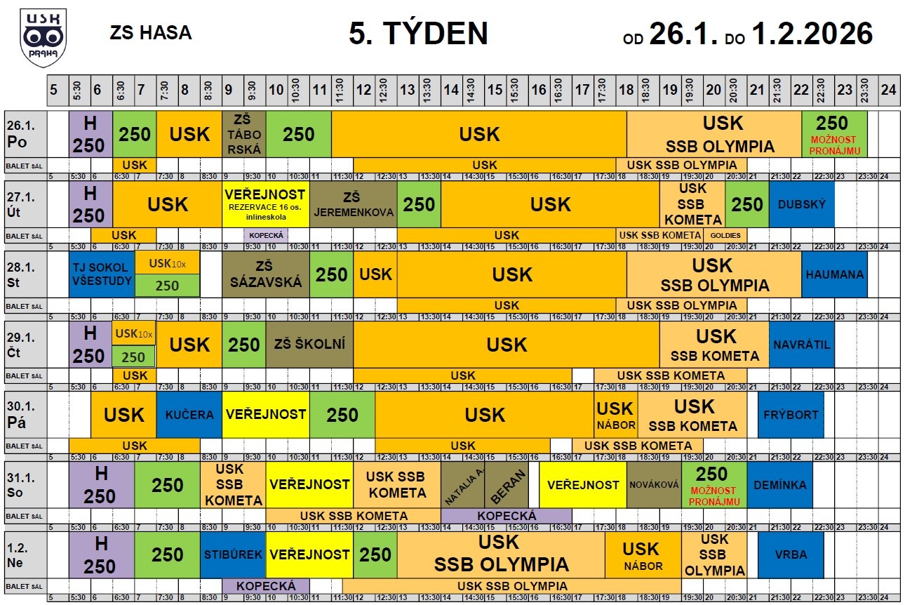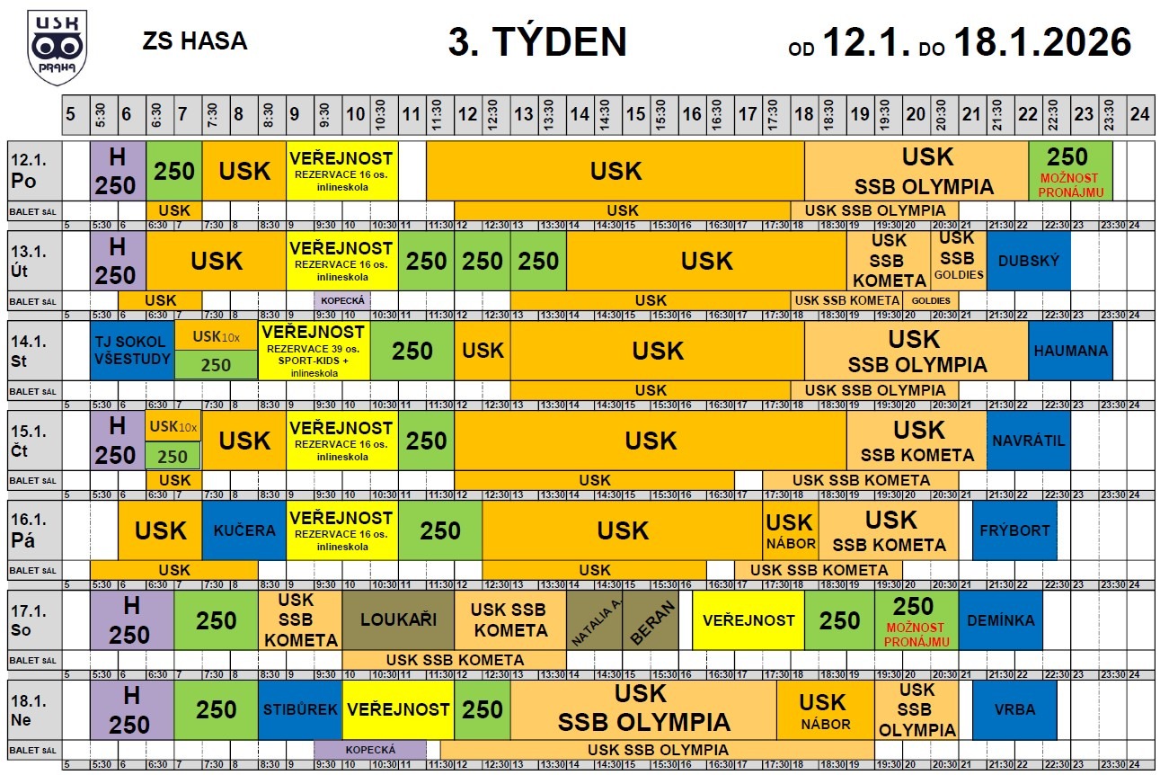 V určených časech zde probíhá hobby hokej, kurzy bruslení, krasobruslařské tréninky jednotlivců, párů a synchronizovaného bruslení. Informace o kurzech bruslení, krasobruslení a synchronizovaném bruslení najdete na stránkách www.krasobrusleniusk.cz